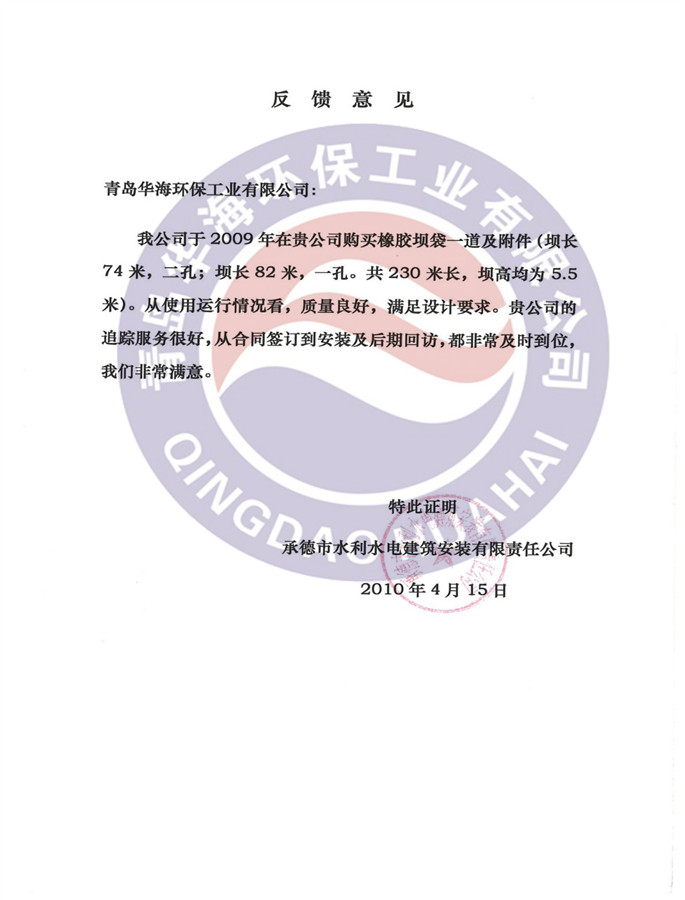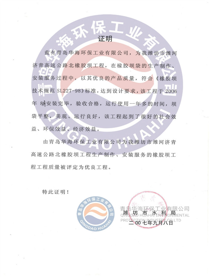 04公司擁有完善的售后服務(wù)體系,配備高水平、高質(zhì)量的專業(yè)技術(shù)服務(wù)人員30余名,其中多人擁有20年以上行業(yè)經(jīng)驗(yàn)。公司深耕橡膠壩、氣盾壩和溢油防治設(shè)備生產(chǎn)與研發(fā)30余年,參與制定多項(xiàng)行業(yè)標(biāo)準(zhǔn)。
